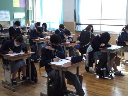 3年2組は、数学の授業で公立高校中期選抜検査に向けての試験対策として「規則性の問題」に取り組みました。