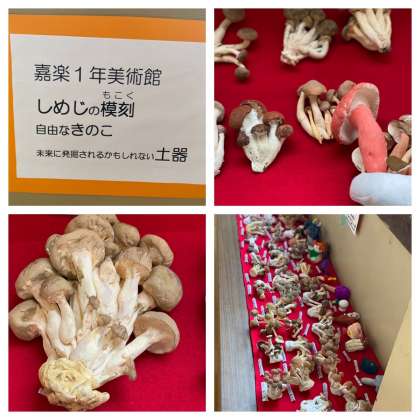 美術の時間に取り組んだ「しめじ」の摸刻と『自由なきのこ』の作品が、