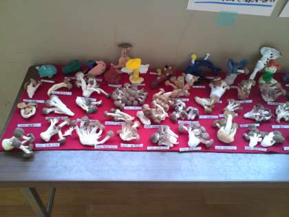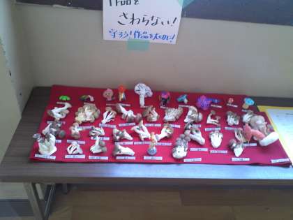 本物をモチーフに観察しながら紙粘土で模刻したシメジの作品です。「この中には、本物のシメジが混ざっていますが、どれだかわかりますか?」との質問に、皆さんは、「どれも本物そっくりだけど、どれだろう?」と騙されるかもしれませんよね。実は、本物は混じっていません。すべて模刻したシメジの作品です。素晴らしいですよね。