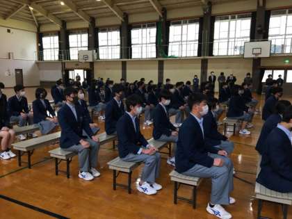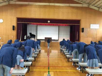 本日1時間目,体育館にて卒業式の予行練習を行いました。