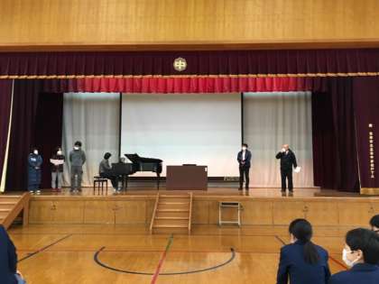 3年生担当の先生から心のこもった「旅たちの日に」の歌をプレゼントしました。