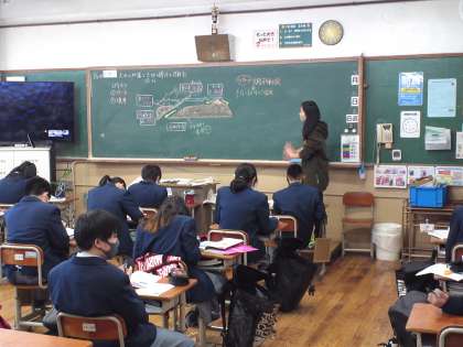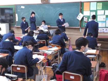1年3組は、理科の授業で「火山や地震と大陸(プレート)の変動のつながり」を学習し、その後、小テストで確認して、一年生の学習範囲をすべて終了しました。
