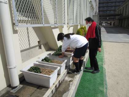 1組は、生活の授業で今まで育ててきたダイコンなどへの水やりと草取りをしました。そして、今日、気づいたことですが、唯一、実をつけたイチゴが虫か鳥に食べられていたことが残念です。
