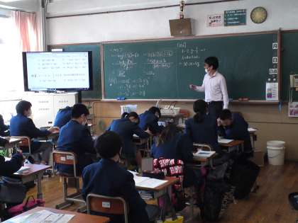 1年3組は、数学の授業で「単項式の乗法と除法」について学び、1年生の学習範囲を全て終了し、続いて2年生の学習を少し先取りして学びました。