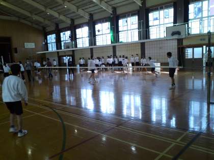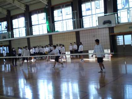 1年生は、学年レク大会でバレーボールのクラス対抗試合をしました。時々、バレーボールらしい“レシーブ”“トス”“スパイク”の連係プレーが見られましたが、まだ、ほとんどが“レシーブ”=“返球”的なプレーで、2年生で本格的な「バレーボール」になることを期待するところです。試合結果は、優勝2組、準優勝3組でした。
