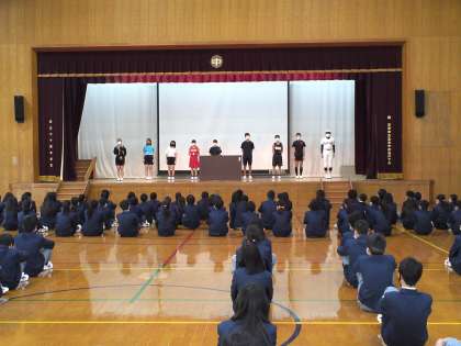 4限目に春季総合体育大会に向けての激励会が体育館で催されました。