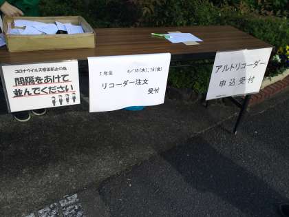 今日と明日の二日間で、1年生の音楽の授業に使用するアルトリコーダーの購入申し込み受け付けをやります。