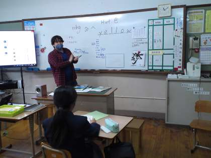 1組は、英語の授業で、爆弾ゲームやハングマンゲームをしながら、今まで覚えた英単語の復習をしました。