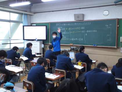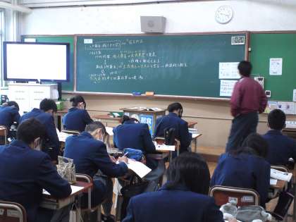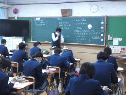 3年2組は、数学の授業で、「乗法公式」を確認して、「乗法公式の応用の計算」をしました。