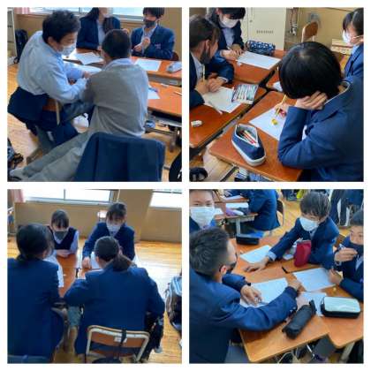 ひとりひとりが班の中で、自分の思いや意見を出し合い、ではそのあとどうするか、悩みながらも一つに意見をまとめていました。