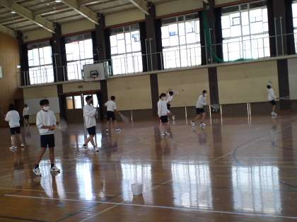 3年4組は、体育の授業で、「ソフトテニスの基本練習」をしました。