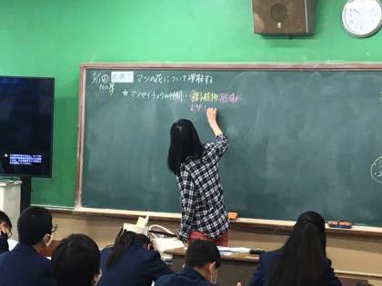 3組の理科ではマツの葉について理解をするという学習目当ての下,学習プリントを使用して学習が進められていました