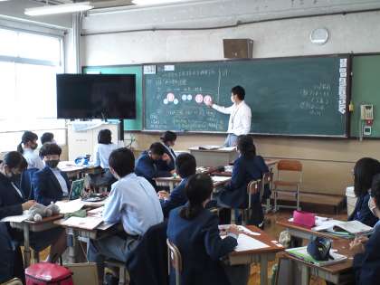 2年3組は、社会の授業で、「日本の人口構成と人口分布から現代社会の課題」について考え、続いて「世界のエネルギー生産について資源の分布に偏りがあること」が資料を通して分かりました。