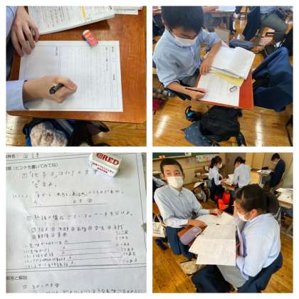 今までのノートや教科書を見直しながら,それぞれが各教科の問題を作成しています。