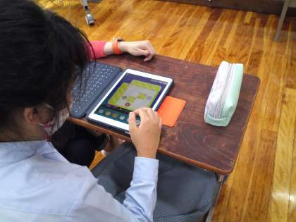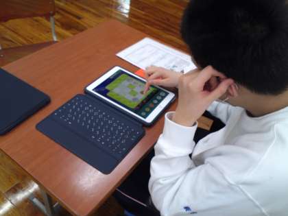 1組は、数学の授業で、GIGA端末の操作に慣れるために「コインクロス」などのゲームをしました。
