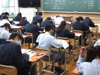 1限目の自主学習に続いて、2限目の理科のテストが始まりました。