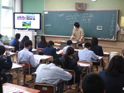 1年生は、2組が社会、3組が理科の授業でそれぞれテスト返しと復習をしました。