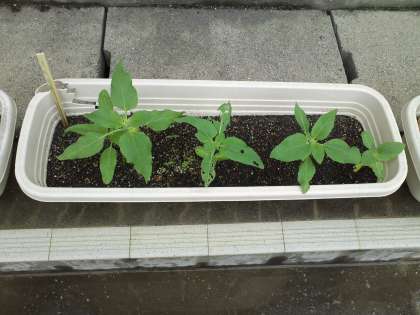 4月14日に各クラスの環境美化委員が環境美化の目的で種を植えたヒマワリのその後の成長の様子です。