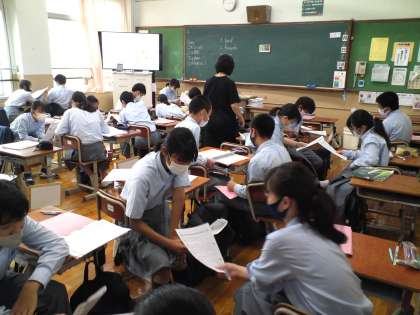 2年4組は、英語の授業で、「“If”を用いた本文の朗読」に続き、模擬の旅行プランの発表準備をしました。