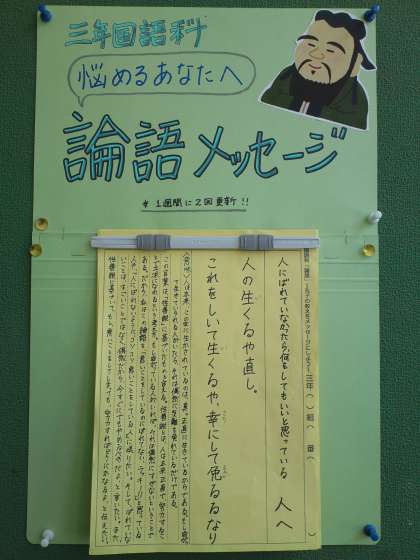 3年生の国語の単元「論語」について、各自で選んだ名言を