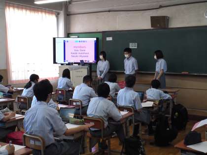 2年2組は、英語の授業で、これまで各班で立案してきた模擬旅行プランのプレゼンテーションを行いました。