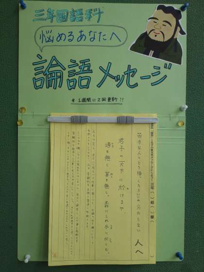 3年生の国語の単元「論語」について、各自で選んだ名言を