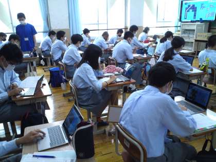 3年2組は、技術家庭科の授業で、プログラミングの基本を学ぶため、プログラミング体験ゲームを使ってGIGA端末で「アルゴリズムの体験」をしました。