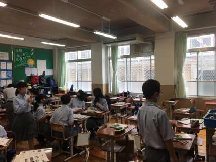 クラスを2つに分け,一つのグループは理科室へ。