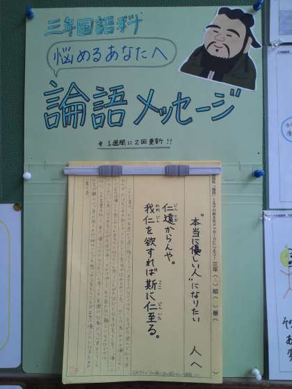 3年生の国語の単元「論語」について、各自で選んだ名言を