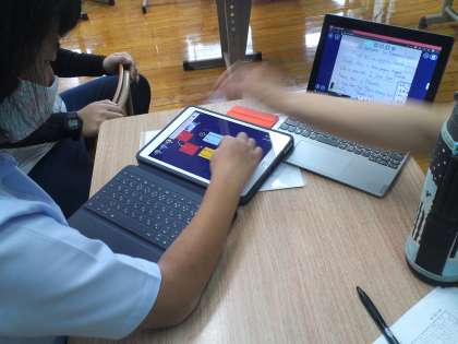 1組の英語の授業は、文化祭で発表予定の「My favorite」のプレゼン資料をロイロノートで作り、リハーサルをしました。