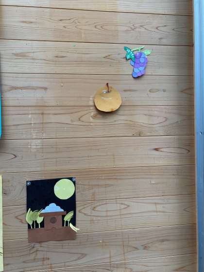 そんな季節を感じてもらえるよう、本日、美術コースで作った九月の飾りを、正門横の掲示板に飾りました。