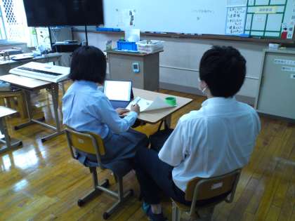 1組の社会の授業は、前回に続き、夏休みの課題として作成した「調べたい国、興味のある国」について、展示用に作り変える作業をしました。