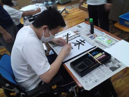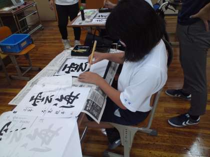 「行書体」で、2年生は「雲海」、3年生は「未来」に挑戦しました。
