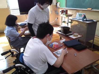 1組の生活の授業は、季節の食べ物を描いたり、学校祭における1組の紹介文を作成したりしました。