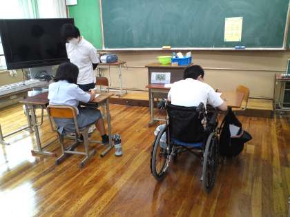 1組は、3限目に2年生が数学、3年生が国語のテストです。