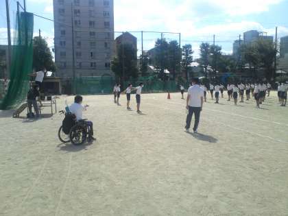 練習に先立ち行った準備運動では、残念ながら競技に参加できない車いすの生徒も一所懸命上半身の体操を行っており、思わず笑みがこぼれました。