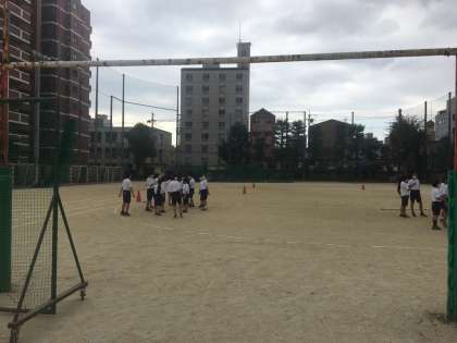 2組は体育で台風72号の練習をしていました