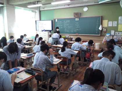 1年2組の英語の授業は、辞書の使い方について、実際に辞書で単語を引きながら学びました。