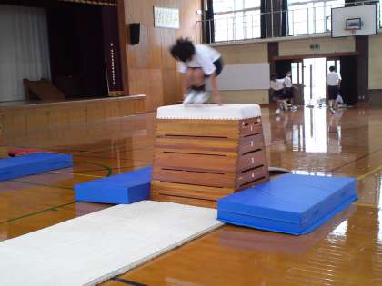 1年2組の体育の授業は、「跳び箱の“開脚跳び”と“抱え込み跳び”」の練習をしました。