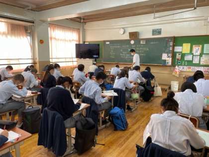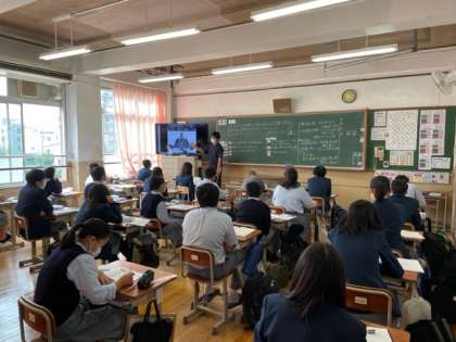 2年3組の社会の授業は、「ヨーロッパ人の来航が日本に与えた影響を考える」というテーマで、授業の前半には、もし自分が戦国大名であったらヨーロッパ人を受け入れるか、受け入れられないか、そしてその理由について考え、後半には、実際は、どのような変化が起きたのかを織田信長の事業を例に確認しました。