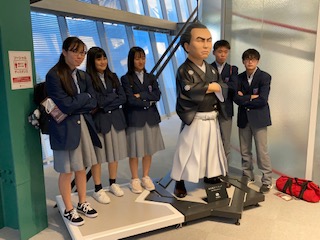 琴平を出て,いよいよ高知県へ! 最初に訪れたのは,「坂本龍馬記念館」です。記念館で坂本龍馬像と記念撮影をしました。