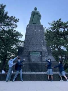 桂浜を右手に,少し坂を登った先には大きな龍馬の像が。桂浜から太平洋,そして世界を見据えているようなカッコいい姿でした。