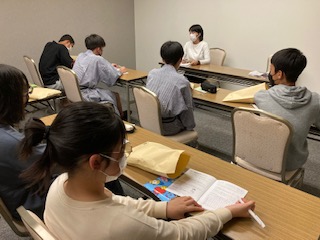 それでは昨日の部屋長会議の様子です。各部屋の貴重品を回収して集まりました。次の日の連絡を聞いて,各部屋に伝達します。