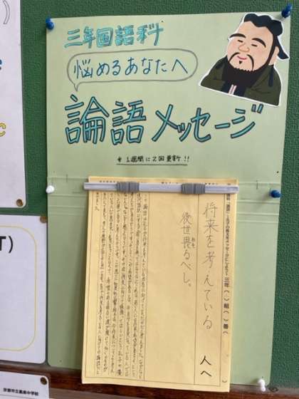 3年生の国語の単元「論語」について、各自で選んだ名言を
