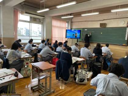 2年3組の国語の授業は、「平家物語の概要」について学び、最後に約10分の動画を視聴することにより、さらに理解を深めました。