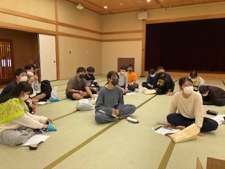部屋長会議の様子。最後の1日をよりよいものにするために,真剣な顔で先生の話を聞いています。今日はゆっくり休んでください。