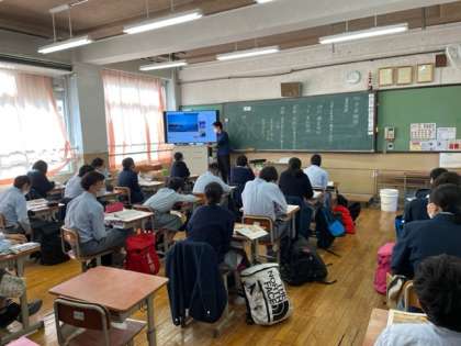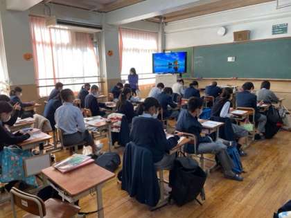 2年2組の国語の授業は、「平家物語の概要」について学び、終わりに約10分の動画を視聴して理解を深めました。