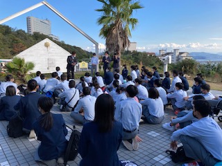 ここで,実行委員の司会の下,今回の修学旅行の解団式が行われました。この旅行を縁の下で支えてくださった,添乗員さん,カメラマンさんへのお礼をしました。ありがとうございました!