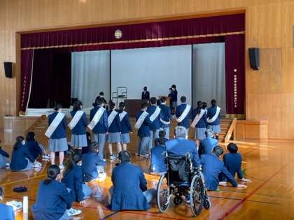 今回の生徒会役員の改選に伴い、立候補者による立会演説会が体育館で行われ、その様子がリモートで各クラスに流されました。