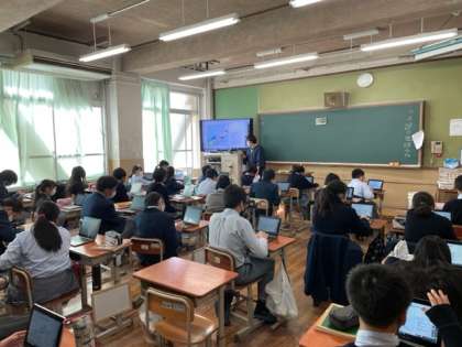 1年2組の社会の授業は、「安土桃山時代の社会の様子」について、デジタル教科書を使って学習しました。